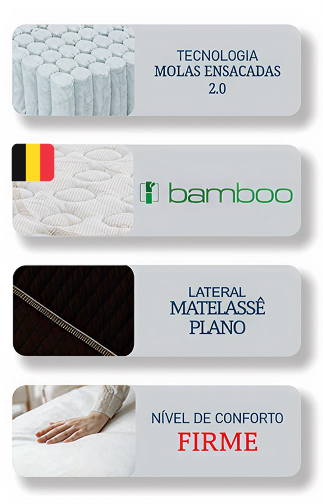 O Vita Bamboo Marrom foi desenvolvido para quem busca um colchão de conforto firme, com alta sustentação e excelente durabilidade. Sua composição une Molas Ensacadas individualmente, Camadas de Espuma D33 e revestimento de Malha Belga com viscose de bamboo, proporcionando maior estabilidade, conforto térmico e resistência ao uso diário.